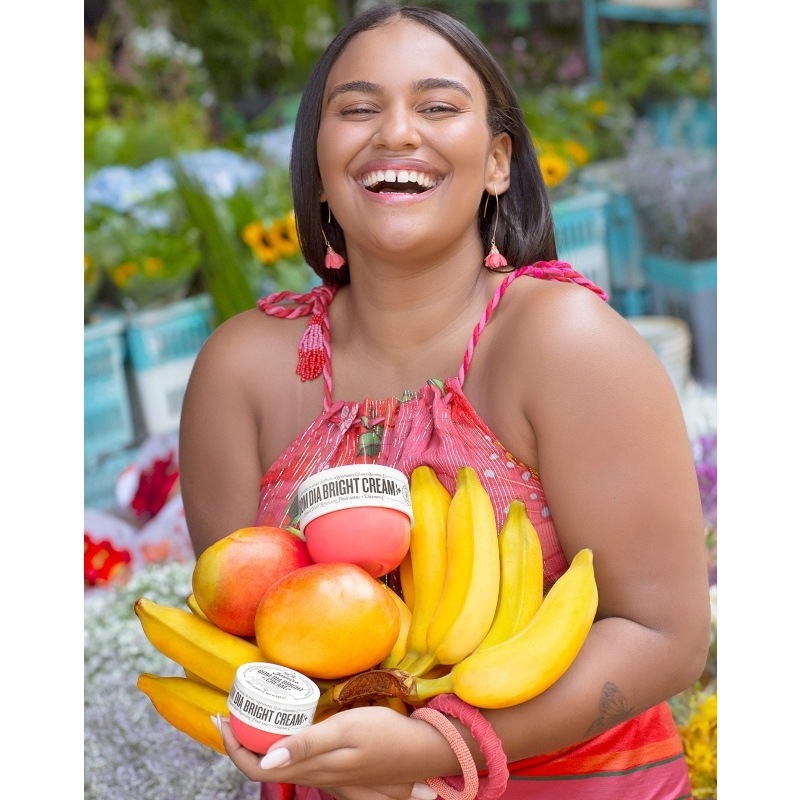 De bodycrème zit boordevol AHA's, onder andere van mango en banaan, die de dode huidcellen zachtjes exfolieert, waarna de huid er nieuw en fris uitziet met een meer gladde en zachte structuur . Daarnaast bevat het hydraterende cupuacusboter, ontstekingsremmend extract van wilgenbast en lichtgevende vitamine C.