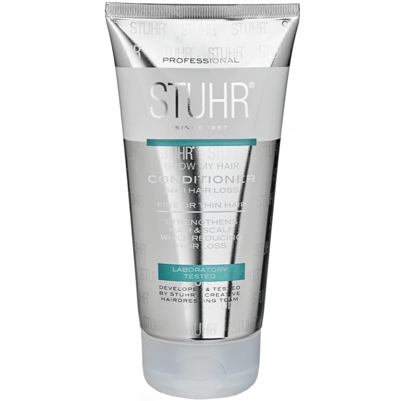 Stuhr Grow My Hair Conditioner versterkt verzwakt haar en bestrijdt effectief haaruitval. De actieve combinatie van eiwitten uit witte lupine, niacinamide, biotine en vitamine E herstelt een gezond evenwicht in de hoofdhuid, stimuleert nieuwe haargroei en verbetert de elasticiteit van het haar. De lichte formule verzwaart het haar niet, waardoor het zacht en makkelijk doorkambaar blijft. Gedocumenteerde laboratoriumtests tonen een gemiddelde toename van het haarvolume (+21%) en de volheid van het haar (+22%) na drie maanden regelmatig gebruik van het trio Grow My Hair Shampoo, Conditioner en Haarserum. Voordelen: - Conditioner - Versterkt verzwakt haar - Voorkomt haaruitval - Stimuleert nieuwe haargroei - Verbetert de elasticiteit van het haar - Lichte formule - Verzachtend - Maakt het haar makkelijker te kammen Gebruik: - Gebruik na elke wasbeurt met Grow My Hair Shampoo - Masseer royaal in de lengtes en punten van het haar - Laat 1-3 minuten inwerken en spoel het haar daarna grondig uit met water - Voor het beste resultaat dient u Grow My Hair Serum eenmaal daags gedurende minimaal drie maanden te gebruiken
