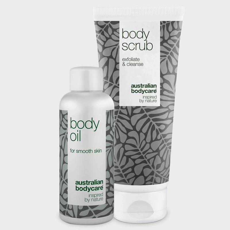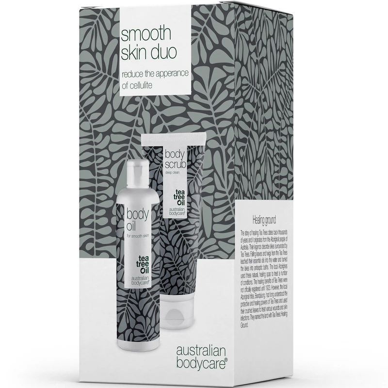 Australian Bodycare Smooth Skin Duo er en deilig kombinasjonspakke med 2 fantastiske produkter som kan brukes av alle som ønsker å redusere forekomsten av appelsinskall og andre hudfeil. Denne duoen består av en kroppsskrubb som eksfolierer huden og fjerner døde hudceller, slik at den blir mer jevn og jevn på overflaten, og sørger også for bedre absorpsjon av de påfølgende pleieproduktene. I tillegg får du også en fuktighetsgivende og nærende kroppsolje, som bidrar til å forbedre smidigheten og utseendet til huden. For å oppnå de beste resultatene med Australian Bodycare Smooth Skin Duo er det viktig at oljen brukes 2 ganger om dagen og at du eksfolierer huden 1-2 ganger i uken. Unn huden din intensiv pleie med denne australske Bodycare Smooth Skin Duo, slik at du kan si farvel til cellulitter og hei til vakker, velstelt og jevnere hud! Settet inneholder: - 1 stk. Australian Bodycare Body Scrub 200 ml - 1 stk. Australian Bodycare Body Oil 150 ml
