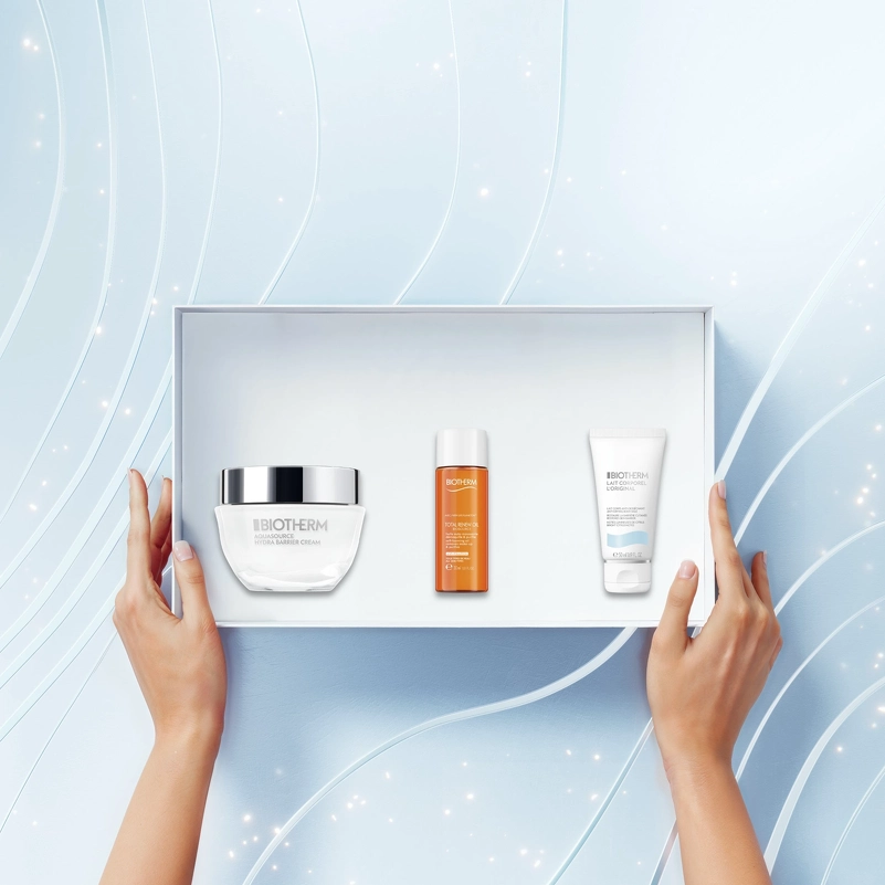 Biotherm Hydra Barrier Gavesett (Begrenset opplag) inneholder produkter som har en intensiv fuktighetsgivende effekt på huden din. Biotherm Aquasource Hydra Barrier Cream for ansiktet inneholder bioceramider som bidrar til å styrke hudbarrieren og øke hudens fuktighetsnivå. Aquasource Hydra Barrier Cream gir 48 timer med intens fuktighet samtidig som den styrker huden din slik at den ser sterkere og sunnere ut. Denne fuktighetsgivende hudbarrierekremen er utviklet for å styrke huden, slik at den blir godt hydrert og sterkere etter bare 1 time. *Basert på instrumentelle tester. Biotherm Biosource Softening Foaming Cleanser er et renseskum som renser huden og fjerner sminke. Den etterlater huden ren, myk og behagelig og er egnet for tørr hud. Biotherm Lait Corporel L'Original er en frisk bodylotion som fukter huden i 48 timer, absorberes raskt og styrker kroppens hudbarriere fra første gangs bruk. Den er egnet for alle hudtyper. Settet inneholder: - 1 stk. Biotherm Lait Corporel L'Original 50 ml - 1 stk. Biotherm Biosource Mykgjørende Skummende Rens 50 ml - 1 stk. Biotherm Aquasource Hydra Barrier Cream 50 ml