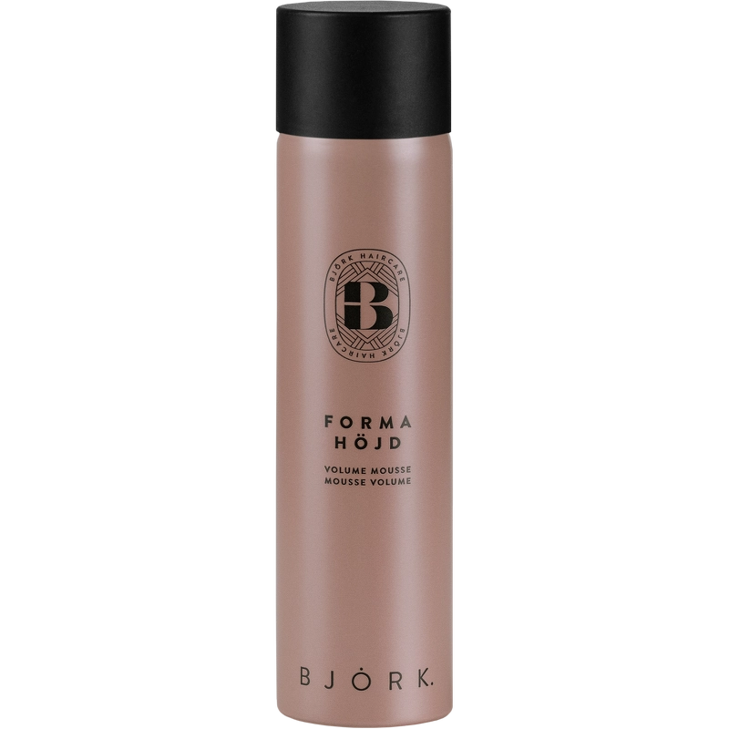 Björk FORMA HÖJD Volume Mousse er et volumgivende sprayskum som skaper volum uten å gi en klissete eller sprø følelse. Vektløs og varmebeskyttende formel med nærende rose- og blåbærekstrakt og vitamin B, som gir fylde, volum og en naturlig glans. Har en luksuriøs, forfriskende og blomsterduft med hint av aprikos. Fordeler: - Mousse - Anbefales for tynt, fint og livløst hår - Volumgivende - Gir volum - Vektløs - Varmebeskyttelse - Nærende - Naturlig glans - Blomsterduft Bruk: - Påfør i lett fuktig hår - Rist flasken godt - Spray fra røttene til lengdene - Gre gjennom for å fordele jevnt og føn - Jo mer produkt som tilsettes, desto mer volum bygges opp