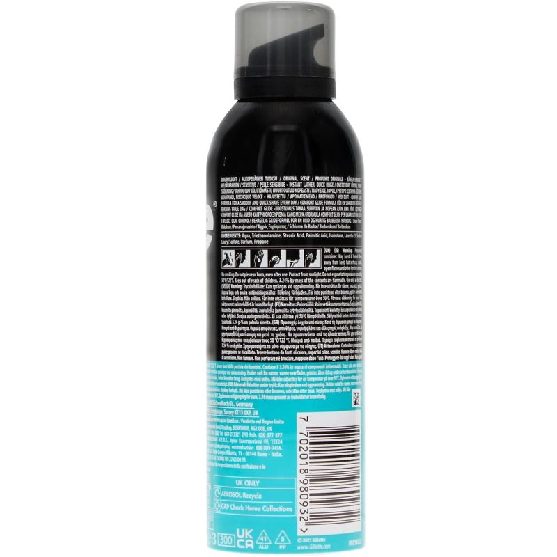 Gillette Foam Sensitive Skin er et klassisk barberskum som er utviklet spesielt for sensitiv hud. Den har en full og deilig tekstur, og er perfekt for deg som vil ha et skum uten for mye duft for barberingen din. Det etterlater huden glatt og myk, og er både enkel å påføre og skylle av etterpå. Fordel: - Barberkrem - Anbefales for sensitiv hud - Minimal duft - Etterlater huden glatt og myk - Enkel å påføre og skylle av Applikasjon: - Påfør på ønsket område før barbering