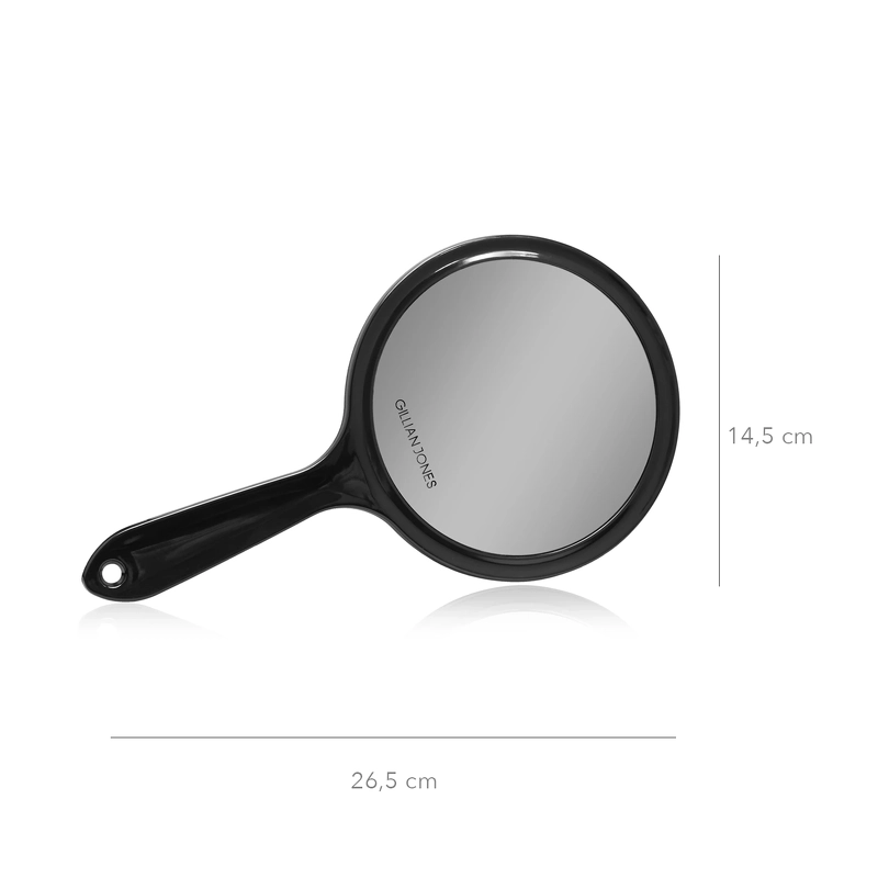 Gillian Jones Hand Mirror - Black er et superfunksjonelt dobbeltsidig håndspeil i slagfast og 100 % resirkulerbar plast. Speilet er laget av ekte speilglass med både 1: 1 og x 1: 5 forstørrelse . Den ene siden forstørrer dermed ditt eget speilbilde, noe som er med på å skape de absolutt beste rammene for at du kan legge den perfekte sminken til både hverdag og fest. Den andre siden viser speilbildet ditt i normal størrelse . På den måten kan du enkelt bytte mellom de to forstørrelsene, og dermed få den perfekte sminken eller håroppsettet. Detaljer: - Håndspeil - Dobbelsidet - 1:1 forstørrelse og x 1:5 forstørrelse - DIA: 14 cm, Lengde: 26 cm - 100 % resirkulerbar plast - Sorter