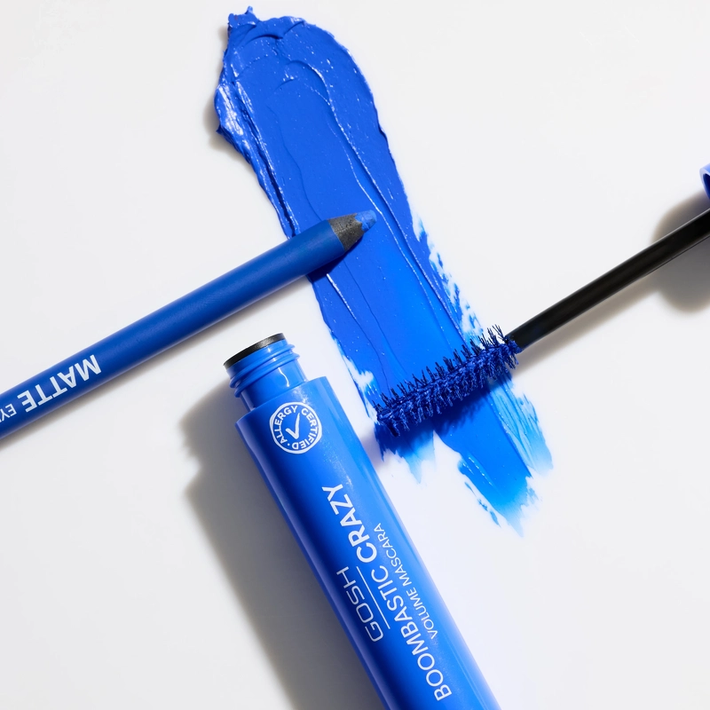 GOSH Boombastic Crazy Mascara - 002 Crazy Blue er en fantastisk mascara som bare gjør alt! Den gir både lengde og volum til vippene, samtidig som den gjør dem perfekt adskilt, uten å klumpe seg. GOSH Boombastic Crazy Mascara - 002 Crazy Blue har en stor børste som er med på å gi vakre og dramatiske vipper. Den fanger opp hver enkelt vippe og dekker den med et fargelag. De lange bustene er med på å skille vippene og gi lengde, mens de kortere bustene gir vippene ekstra volum. Denne mascaraen inneholder nærende ingredienser som hjelper til med å holde vippene sunne, og den er også parfymefri og allergisertifisert. Skap et blikkfang med vakre øyne ved å bruke GOSH Boombastic Crazy Volume Mascara. Fordel: - Blå mascara - Gir lengde og volum - Separerer vippene perfekt - Fanger hvert eneste vippehår - Med nærende ingredienser - Parfymefri - Allergisertifisert Applikasjon: – Start med å påføre ved roten av vippene - Beveg børsten sakte mot tuppen av vippene - Fortsett til ønsket resultat er oppnådd Ingrediensliste: Aqua\Water\Eau, CI 77007\Ultramariner, Copernicia Cerifera Cera\Copernicia Cerifera (Carnauba) Voks\Cire de carnauba, Glyceryl Stearate, Cera Microcristallina\Microcrystalline Voks\Cire mikrokrystallinsk,/Steartic Acid, Styrensyre, Styrensyre Ammoniummetakrylatkopolymer, hydrogenert vegetabilsk olje, butylenglykol, stearylstearat, aminometylpropanol, Ricinus Communis frøolje, fenoksyetanol, kaprylylglykol, CI 77891\Titandioksid, Galaktoarabinan, Natriumdehydroacetat, Leksyetylcellulose12, C natriumsulfat-12-sulfat, 1 15 Pareth-7, Tokoferol, Askorbylpalmitat, Kaliumsorbat, Tetrasodium EDTA, Sitronsyre, CI 77499\Jernoksider.