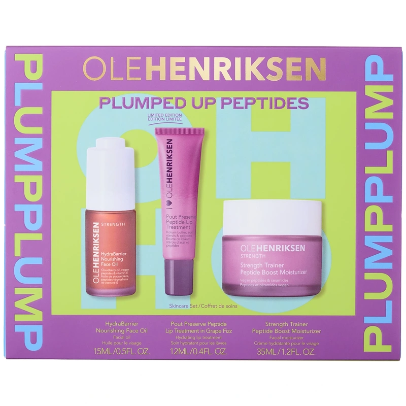 Ole Henriksen Peptide Gavesett Jul 2025 (Begrenset opplag) er en julegave med styrke, fuktighet og masse glød. Skjem bort deg selv eller noen du er glad i med dette settet i begrenset opplag fra Ole Henriksen. Tre kraftprodukter utviklet for å styrke og fukte huden - med synlige resultater. Hudpleie som gjør en forskjell - innpakket og klar til å glede. Verdi: 770,- Settet inneholder: - 1 stk. Ole Henriksen Strength Peptide Boost Moisturizer 35 ml - 1 stk. Ole Henriksen Strength HydraBarrier Nourishing Facial Oil 15 ml - 1 stk. Ole Henriksen Pout Preserve Peptide Lip Treatment 12 ml