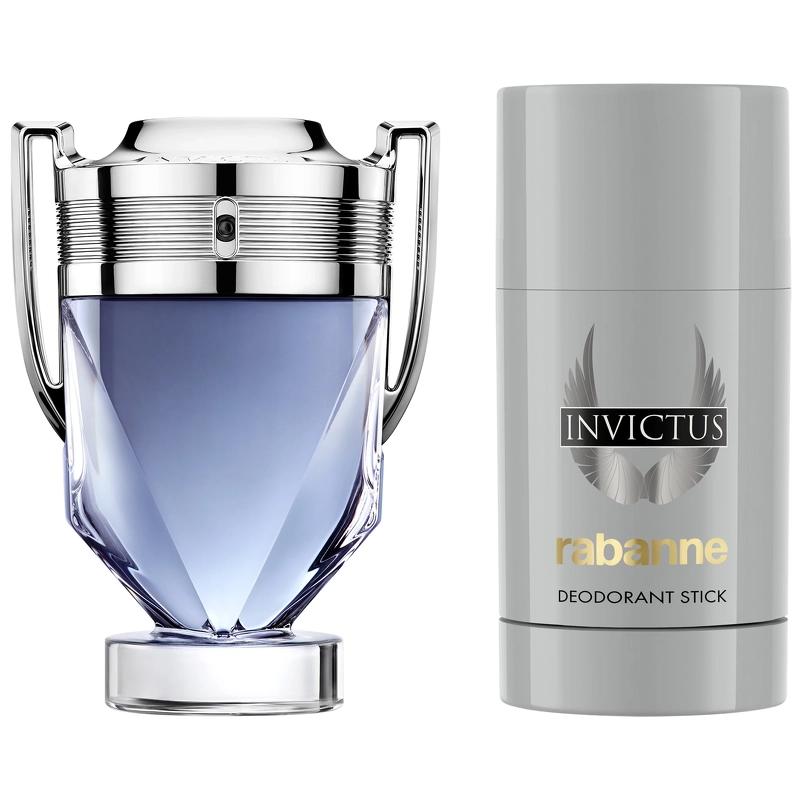 Rabanne Invictus EDT Gavesett (Begrenset opplag) er en vakker gaveeske med alt du trenger for at du eller noen du er glad i skal lukte godt hele dagen lang. Rabanne fanger magien i husets ikoniske uttrykk, ettersom hver gave forvandles til en stjerne i en duftende konstellasjon med sin egen unike historie. I hjertet av denne eksklusive gaven skinner Rabannes gylne stjerne og lyser opp natten. Opplev Invictus Eau de Toilette 50 ml sammen med en Deodorant Stick 75 ml, en glitrende duo for en uforglemmelig julefeiring. Invictus er en frisk og treaktig maskulin duft med noter av grapefrukt og guaiac-tre, kombinert med friskheten av sitrus og en sensuell, mystisk undertone. Settet inneholder: - 1 stk. Rabanne Invictus EDT Men 50 ml - 1 stk. Rabanne Invictus Deodorant Stick Men 75 ml