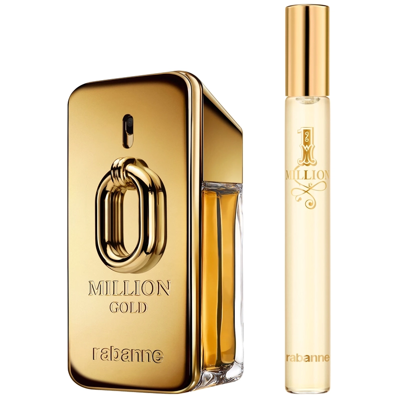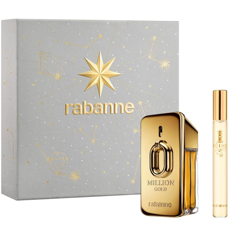 Rabanne Million Gold For Him EDP Gavesett (Limited Edition) er en populær gaveeske for menn, og med god grunn. Rabanne fanger magien i husets ikoniske uttrykk, ettersom hver gave forvandles til en stjerne i en duftende konstellasjon med sin egen unike historie. I hjertet av denne eksklusive gaven skinner Rabannes gyldne stjerne og lyser opp natten. Opplev Million Gold Eau de Parfum Intense 50 ml med en reisespray på 10 ml, en glitrende duo for en uforglemmelig julefeiring. Million Gold Eau de Parfum Intense er selve essensen av gyllen suksess, en sensuell og treaktig avhengighet med frisk mandarin, varm sedertre, levende sandeltre og kraftige krydder. Settet inneholder: - 1 stk. Rabanne Million Gold For Him EDP Intense 50 ml - 1 stk. Rabanne Million Gold for ham EDP Intense 10 ml (https://nicehair.dk/rabanne-million-gold-for-him-parfum-50-ml.html)