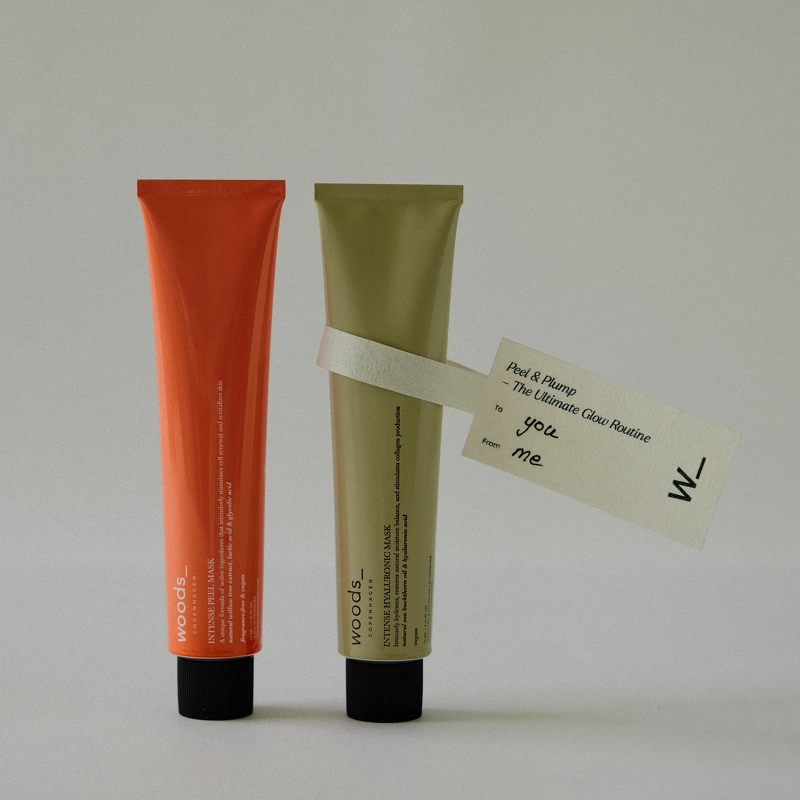 Woods_Copenhagen Peel & Plump - The Ultimate Glow Routine Gift Set er en deilig gaveeske med 2 ansiktsmasker som gir nytt liv til tørr og sliten hud. Intense Peel Mask eksfolierer effektivt hudoverflaten takket være glykolsyre og melkesyre, som samtidig fremmer hudens kollagenproduksjon og etterlater en glattere, fastere og jevnere overflate med en sunn, fornyet glød. Intense Hyaluronic Mask tilfører den perfekte fuktighetsboosten etter behandlingen og beriker huden med hyaluronsyre, som kan binde 1000 ganger sin egen vekt i vann. Når den påføres huden, tilfører og binder denne unike ingrediensen effektivt fuktighet, både på hudoverflaten og i de dypere lagene. På denne måten mettes huden med fuktighet fra innsiden og ut, noe som gjør den synlig mer elastisk og fyldig. Takket være en berikende kombinasjon av svært aktive og naturlige ingredienser, sikrer disse maskene resultater som du kan føle i løpet av minutter og en forskjell som du kan se på lang sikt. Skjem bort deg selv eller noen du er glad i med dette fantastiske settet. Esken inneholder: - 1 stk. Woods_Copenhagen Intense Peel Mask 75 ml - 1 stk. Woods_Copenhagen Intense Hyaluronic Mask 75 ml