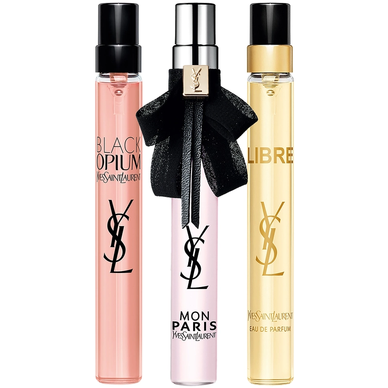 Yves Saint Laurent Miniature For Her Gift Set (Limited Edition) er et eksklusivt julegavesett som inneholder tre ikoniske Eau de Parfums: Black Opium, Mon Paris og Libre, hver på 10 ml, som hver utstråler en unik og sofistikert personlighet. Black Opium fortryller med den dype bitterheten fra svart kaffe, de strålende hvite blomstene og den sensuelle varmen fra vanilje, og skaper en fengslende og langvarig aroma. Mon Paris er en berusende chypre-blomsterkomposisjon som kombinerer sensuell musk, hypnotiserende nypeakkord og rik patchouli for en moderne, feminin duft. Libre balanserer dristig fransk lavendel med sensuell marokkansk appelsinblomst, og uttrykker frihet og selvtillit i hvert spray. Ingrediensene i hver Eau de Parfum består av høykvalitets duftoljer og essenser som kombinerer blomster-, treaktige og gourmandnoter for å skape en balansert og langvarig duft. Spray duften på pulspunkter som håndledd, nakke og bak ørene. Påfør etter behov for å opprettholde duftens intensitet og varighet gjennom dagen eller kvelden. Disse duftene er ideelle for spesielle anledninger, høytider eller som en luksuriøs gave. Nyt å kombinere de tre duftene lagvis for å skape en unik, personlig signaturduft, eller bruk dem separat for å skape en spesiell stemning og stil. Settet inneholder: - 1 stk. Yves Saint Laurent Black Opium EDP 10 ml - 1 stk. Yves Saint Laurent Libre EDP 10 ml - 1 stk. Yves Saint Laurent Mon Paris EDP 10 ml